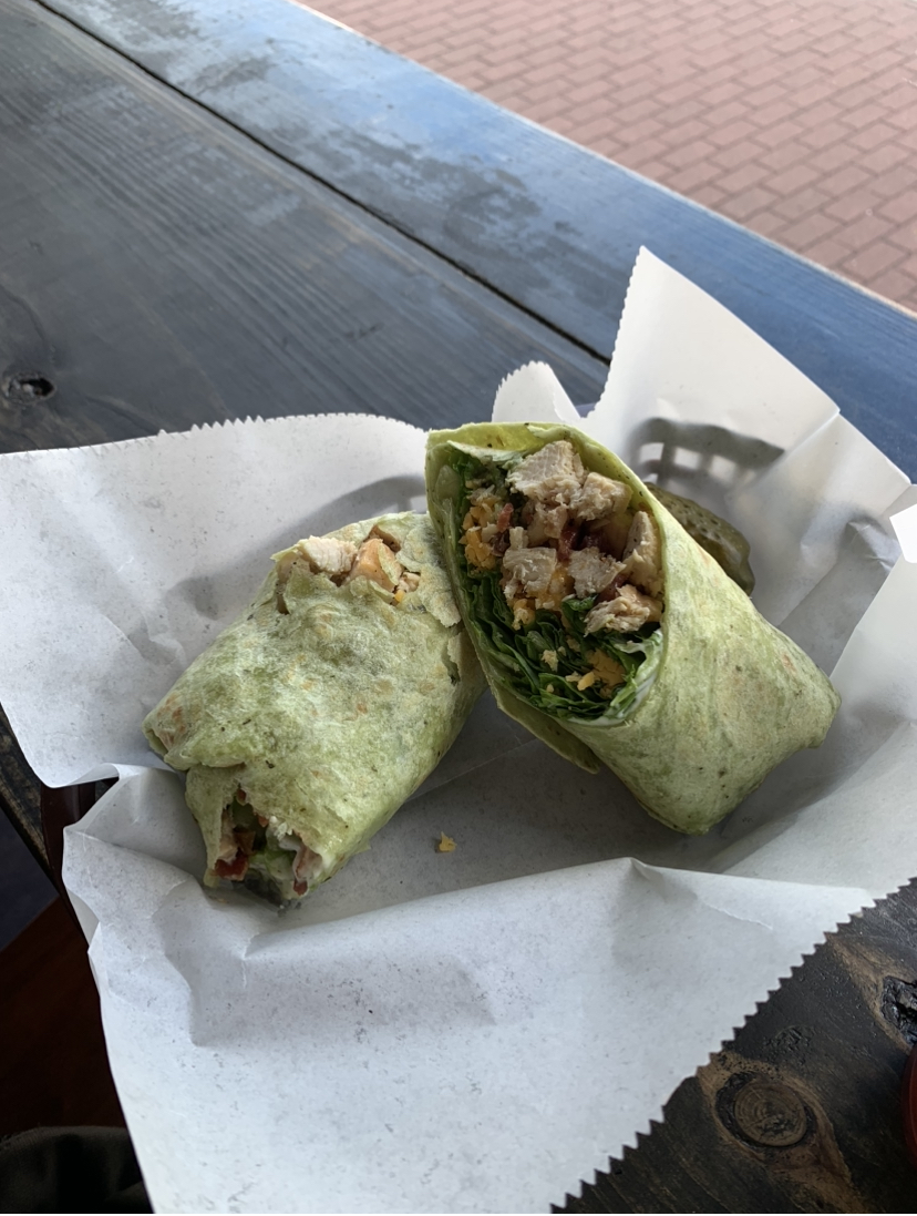 The door was extremely hard to open. I felt ridiculous. I have a shoulder injury. and had to call and they were so kind they offered to bring the food out to me. It was delicious. I definitely hope it sticks around. I want to try some of the wonderful sounding drinks next I got the rosemary turkey And it was delicious.